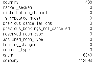 결과를 보면 company 열의 데이터 중 무려 1122593개의 null값을 확인할 수 있습니다.