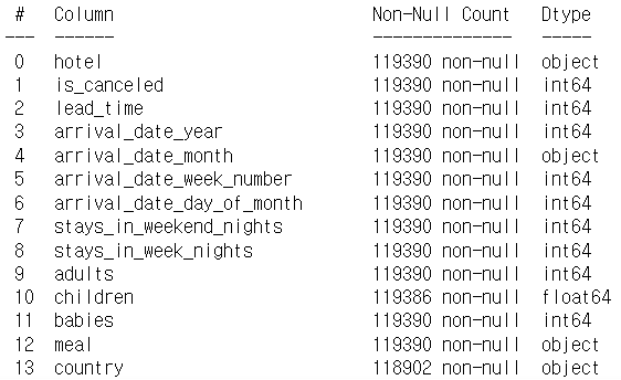 info 함수를 사용하여 어떤 열 데이터가 있는지 확인할 수 있습니다.