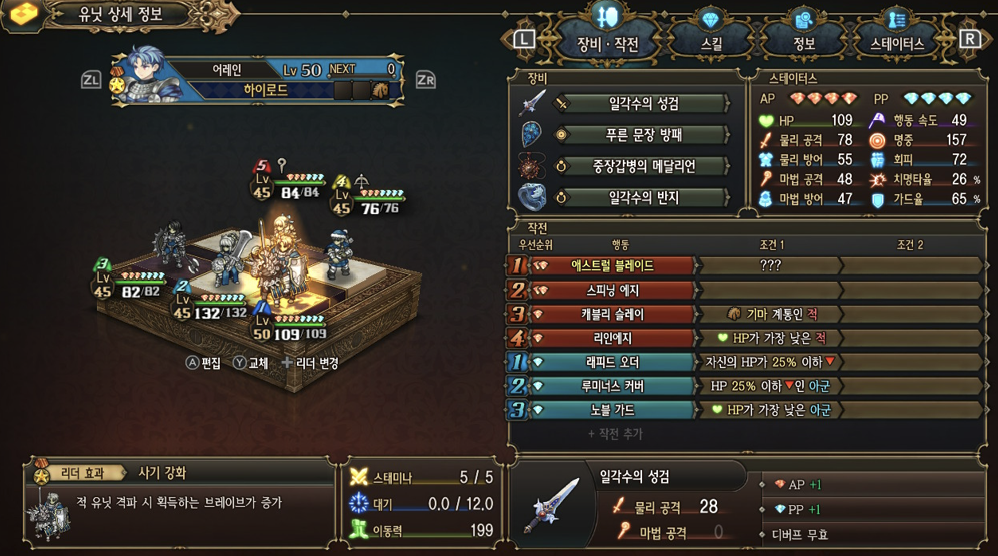 노멀 난이도 50시간 플레이 후 드디어 '유니콘 오버로드'를 클리어했습니다. 정말 오랜만에 시간 가는 줄 모르고 플레이한 SRRG 명작이라고 생각합니다. 스토리는 평범하지만 다양한 아이템 및 캐릭터 조합을 시도할 수 있어서 SRPG 팬으로서 높은 평가를 주고 싶습니다. 클리어 기념으로 제가 사용했던 캐릭터 조합 및 후반 경험치 노가다 팁을 공유하고자 합니다. 지금 출발합니다!