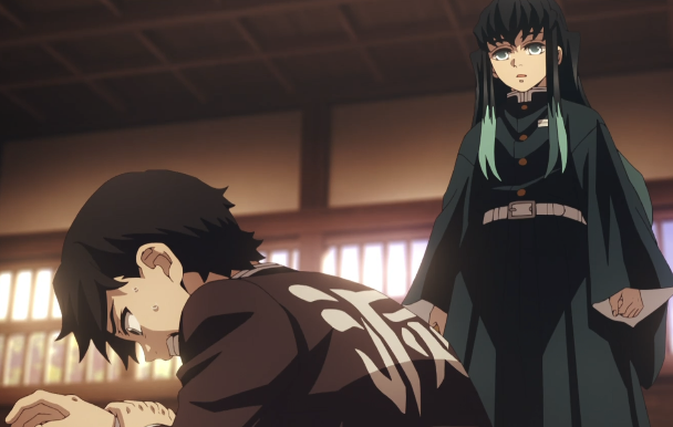 무이치로는 귀살대 대원들과 혹독한 대련 수업을 하며 계속해서 차가운 모습을 보여줍니다. 무이치로의 높은 수업 난이도와 차가운 모습에 대원들은 풀이 죽어있습니다. 무이치로는 긴장감이 부족하다는 이유로 진검 승부를 제안하고, 대원은 두려운 나머지 승부를 포기합니다. 승부를 포기한 대원은 자신은 강하지 않지만 항상 노력하는 무이치로와 기둥을 돕기 위해 강해지겠다는 자신의 생각을 이야기합니다. 이를 들은 무이치로는 대원들이 죽지 않고 오래 살았으면 좋겠다는 자신의 진심을 전달합니다. 무이치로는 대원들이 빠르게 강해져 오니에게 살해당하지 않았으면 하기 때문에 대원들에게 쓴소리를 하며 차갑게 대한 것이었습니다.