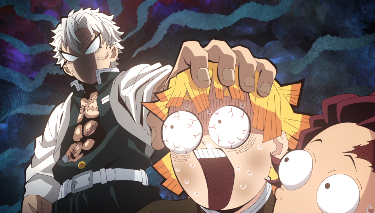 풍주 사네미의 훈련장을 찾던 탄지로는 사메이에게서 도망치던 젠이츠를 만납니다. 사네미는 시끄러운 젠이츠를 기절시키고 탄지로에게 젠이츠를 데려오라고 합니다.