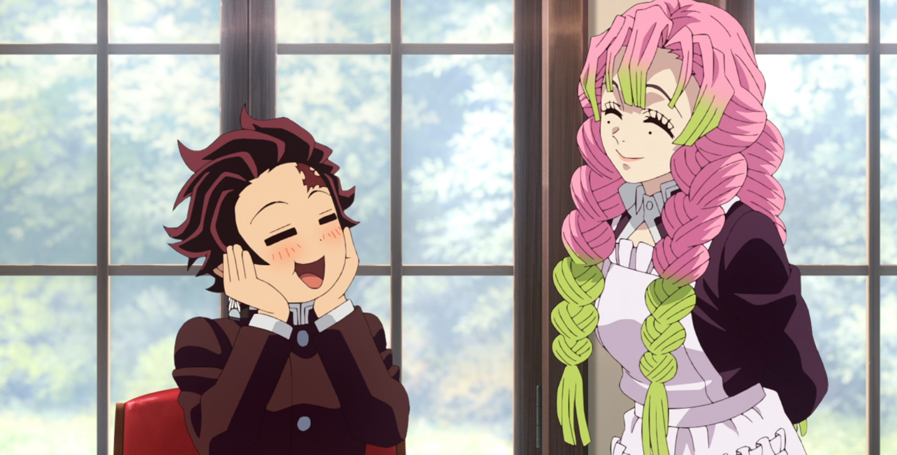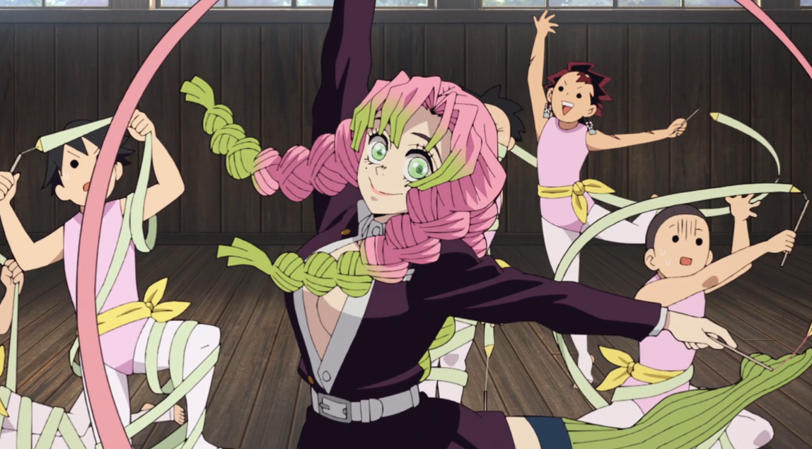미츠리의 훈련장에 도착한 탄지로는 미츠리가 만든 디저트를 먹으며 즐거운 시간을 보냅니다. 이후 미츠리가 준비한 발레복을 입고 유연성 훈련에 참여합니다. 탄지로는 엉망진창인 일반 대원들과는 달리 무난하게 미츠리의 훈련을 따라갑니다.