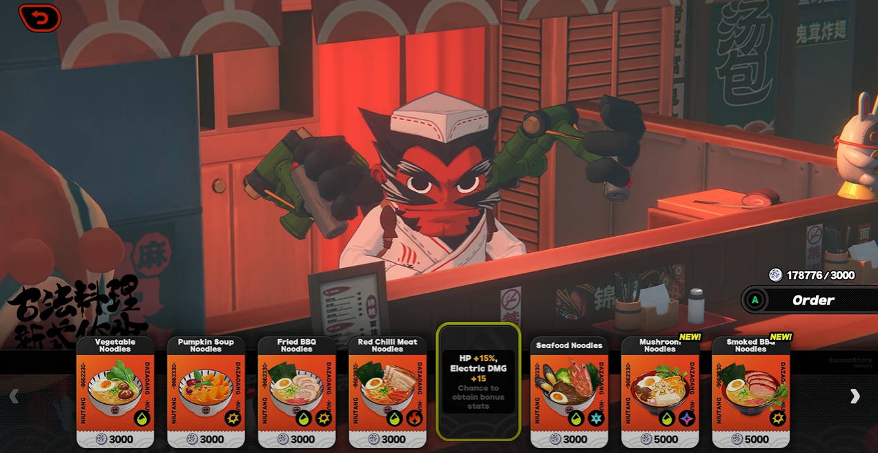 스테이지에 진입하기 전에 음식을 구매하여 버프를 얻을 수 있습니다. 와.. 새우 퀄리티가 미쳤습니다..