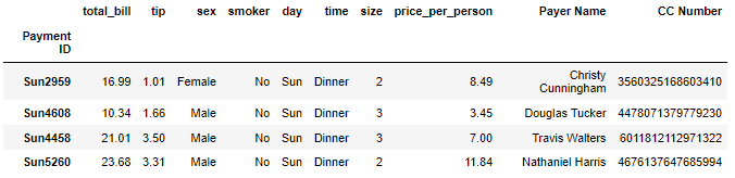 set_index 함수를 사용하여 Payment ID를 인덱스로 지정합니다. head 함수를 활용하여 순서 상 상단 5개의 행 데이터를 가져옵니다.