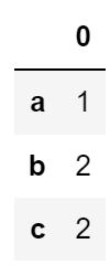 simple_df = pd.DataFrame([1,2,2],['a','b','c'])